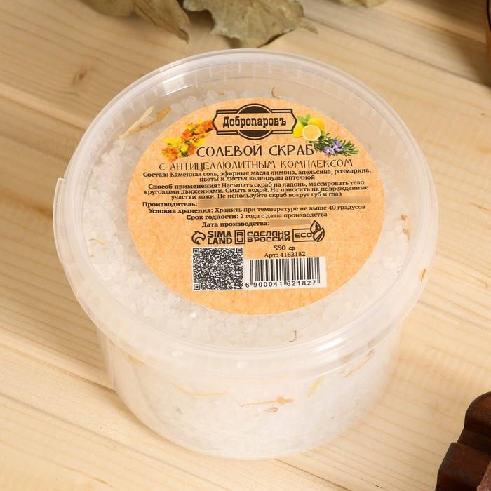 Солевой скраб "Добропаровъ" из белой каменной соли с маслом апельсина и травами, 550 гр