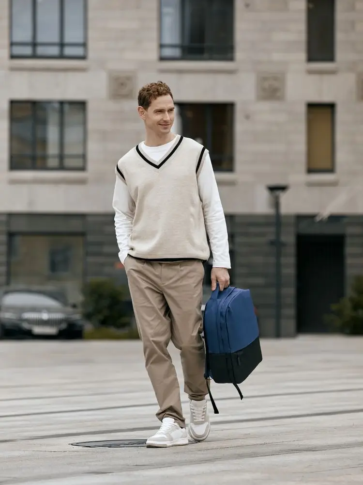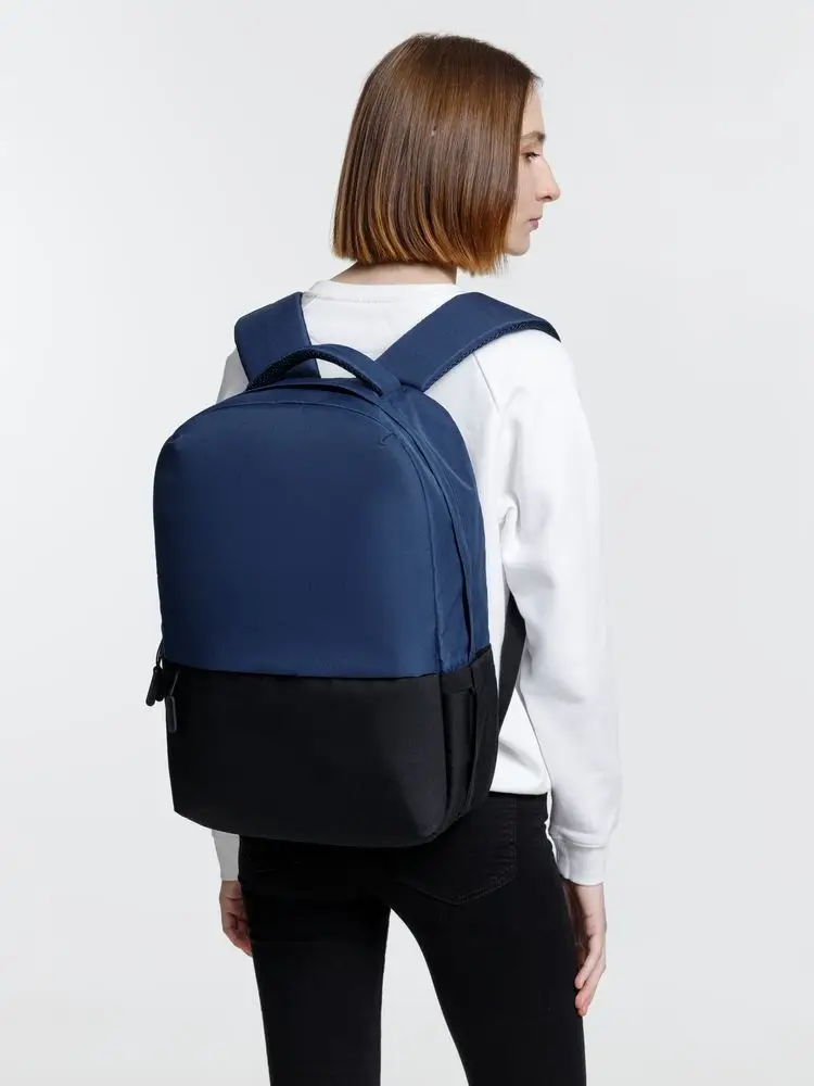 Двухцветное исполнение с темным низом и более светлым верхом, с одной стороны, помогает рюкзаку дольше сохранять опрятный внешний вид, а с другой — позволяет активнее и контрастнее выделить логотип компании.