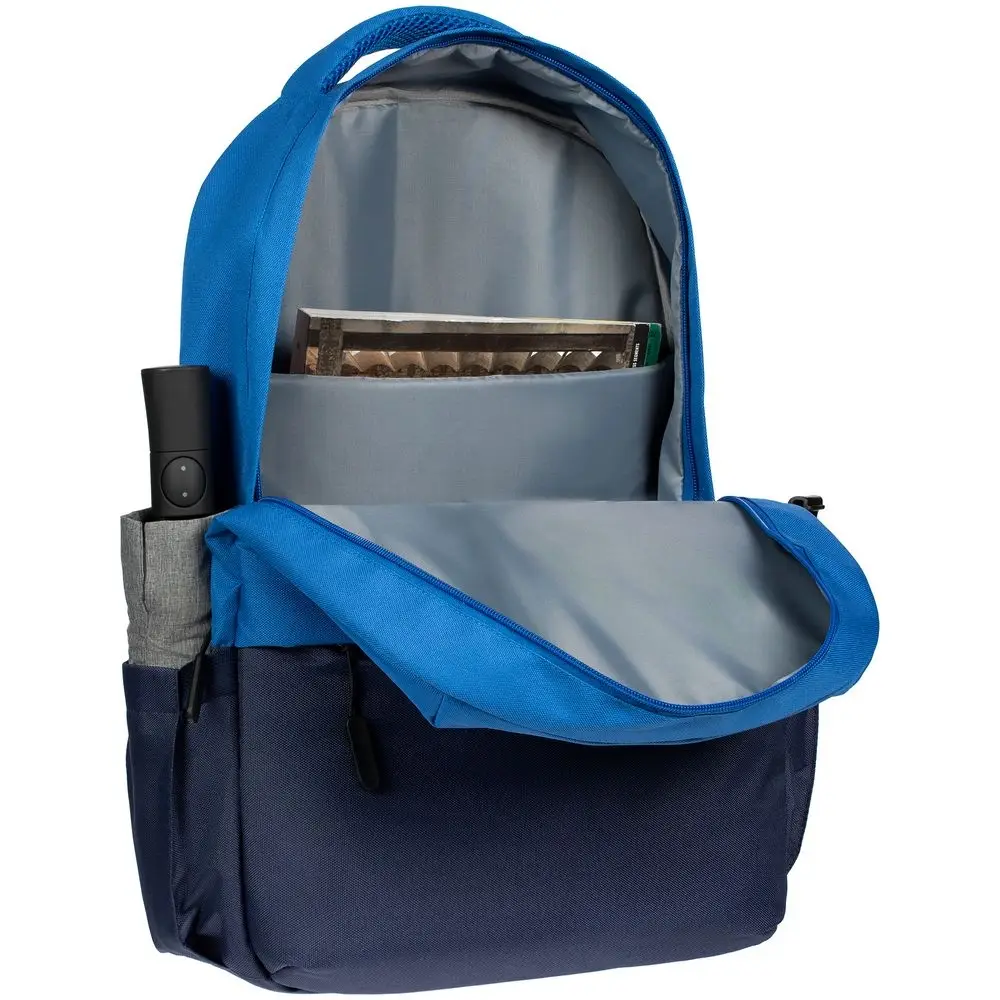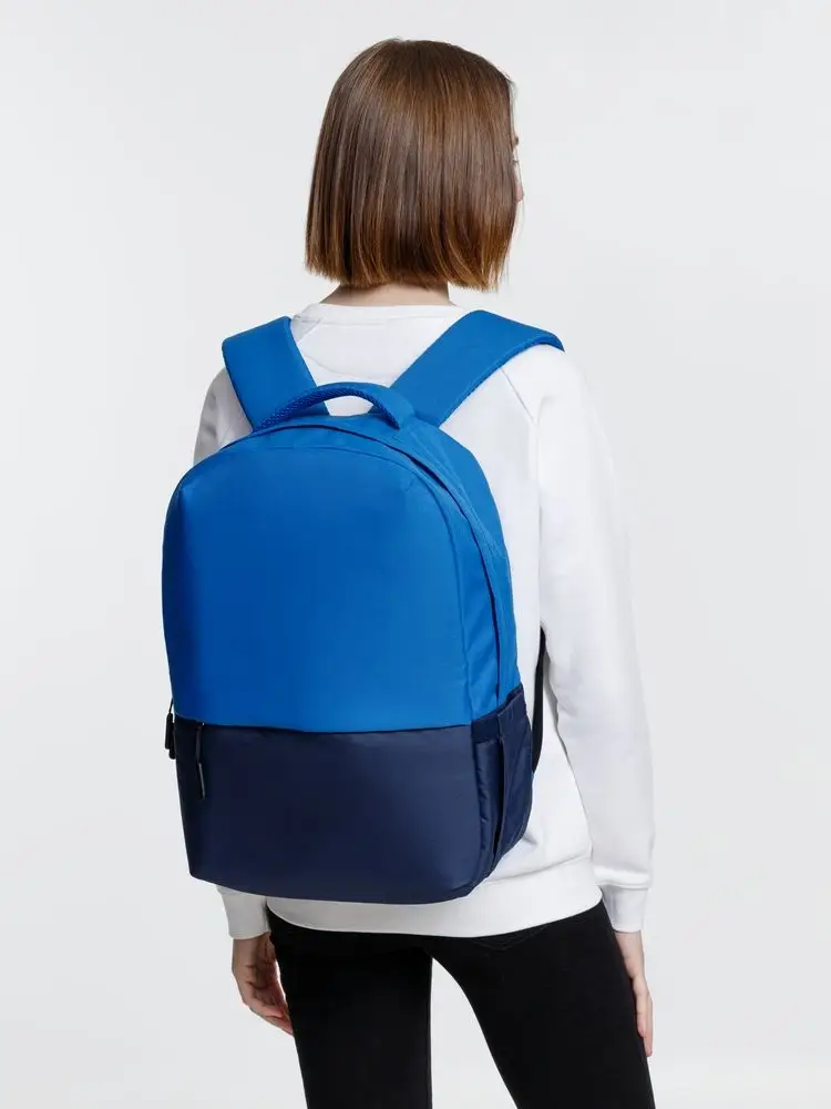 Двухцветное исполнение с темным низом и более светлым верхом, с одной стороны, помогает рюкзаку дольше сохранять опрятный внешний вид, а с другой — позволяет активнее и контрастнее выделить логотип компании.