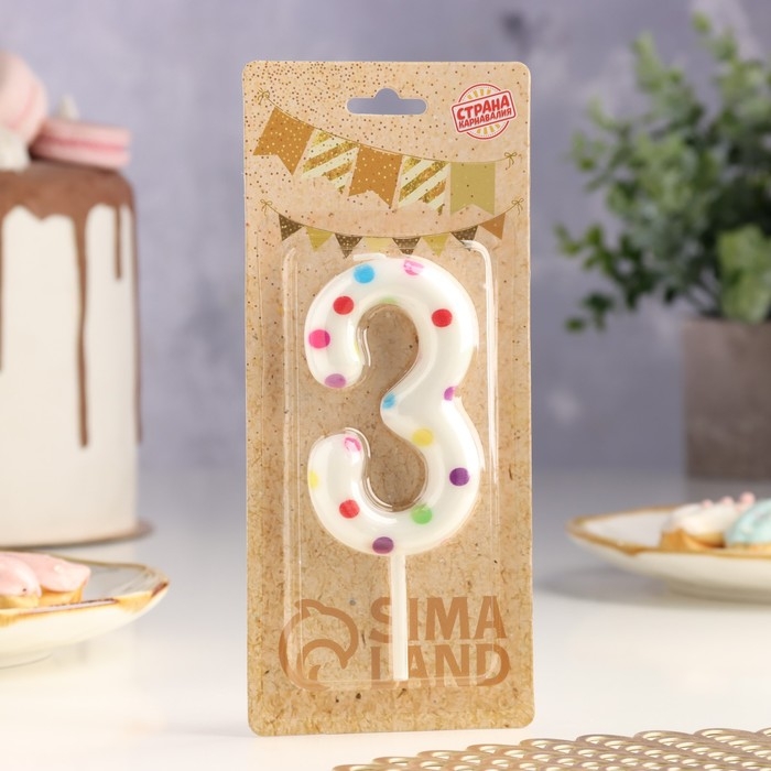 Свеча в торт на день рождения «Конфетти», цифра "3" , ГИГАНТ, 9 см