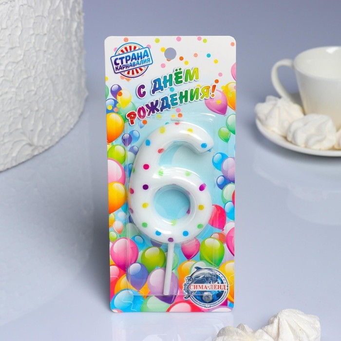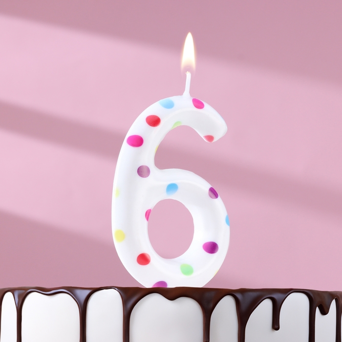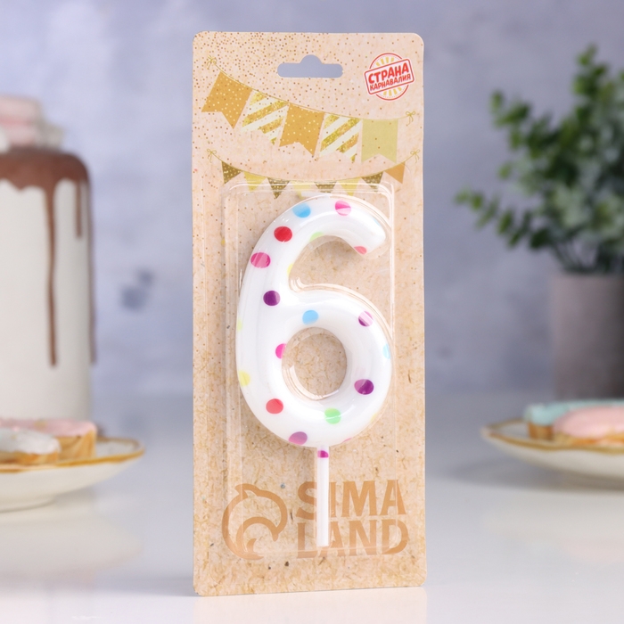 Свеча в торт на день рождения «Конфетти», цифра "6" , ГИГАНТ, 9 см