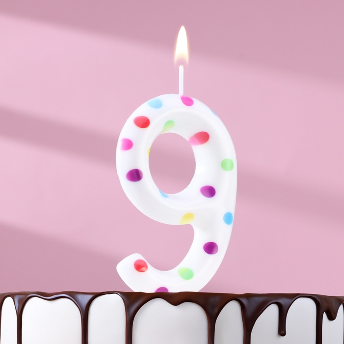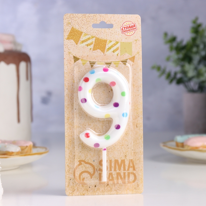 Свеча в торт на день рождения «Конфетти», цифра "9" , ГИГАНТ, 9 см