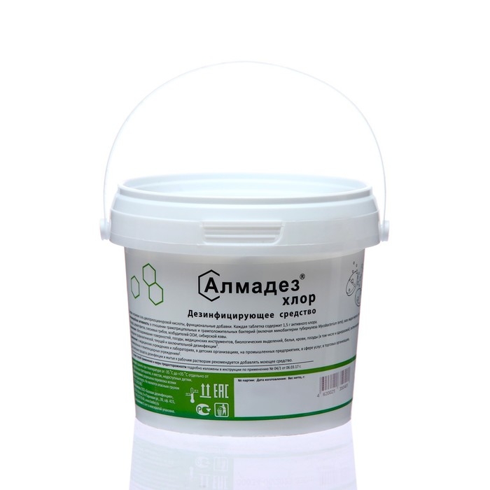 Дезинфицирующее средство Алмадез-хлор - это эффективное средство для дезинфекции различных поверхностей и предметов. Оно выпускается в форме таблеток весом 3,4 г, упакованных в блистеры по 100 штук.