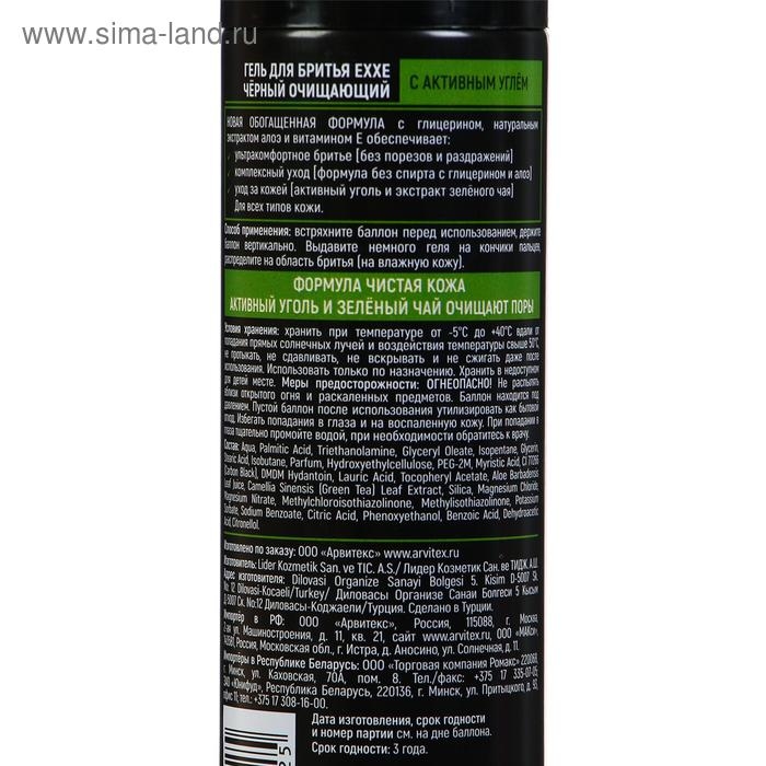 Гель для бритья Exxe "Активированный уголь" черный, для всех типов кожи, 200 мл