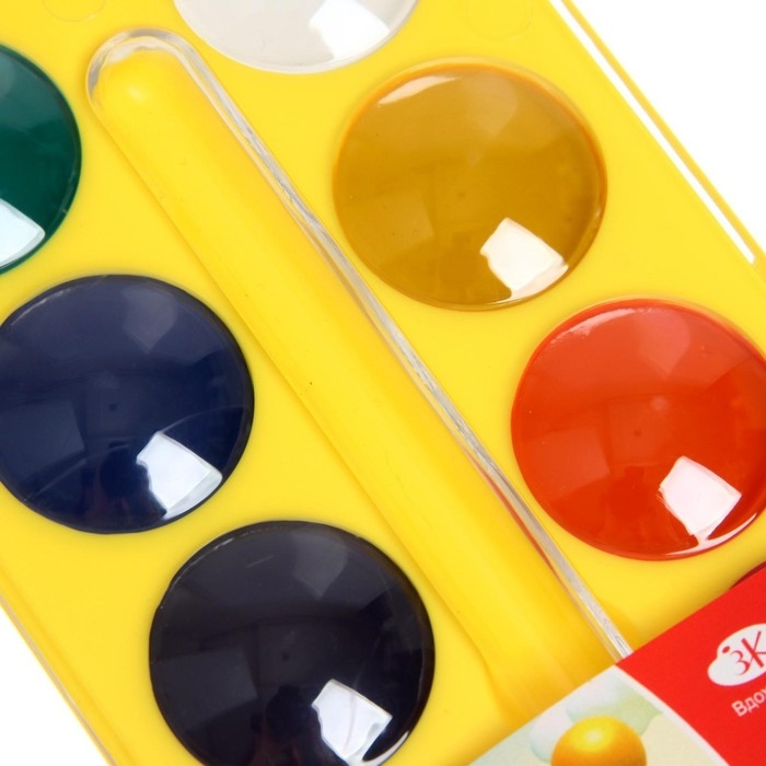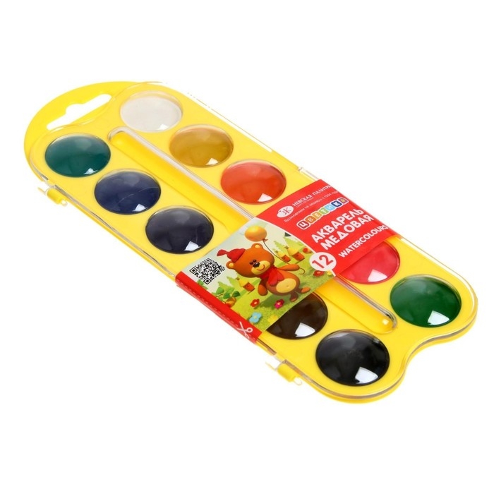 Краски акварельные, в кюветах, с кистью, 12 цветов