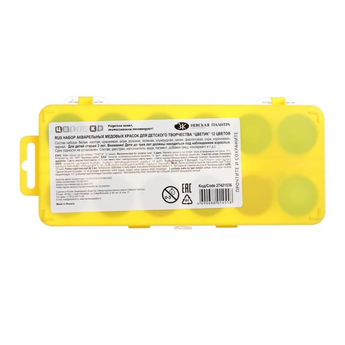 Акварельные медовые краски "Цветик" разрабатывались с учетом высоких требований к качеству и безопасности специально для детского художественного творчества дошкольников.