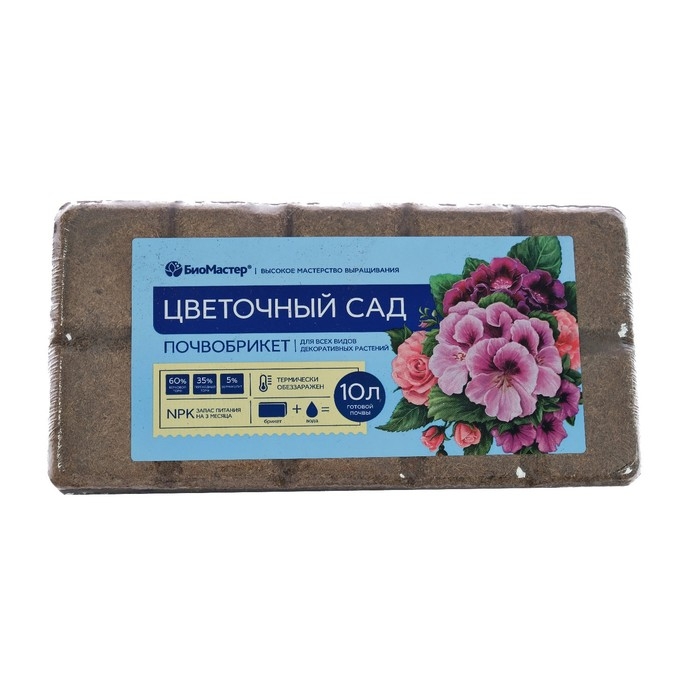 Почвобрикет БиоМастер «Цветочный сад» — состав для выращивания декоративных садовых и комнатных растений.