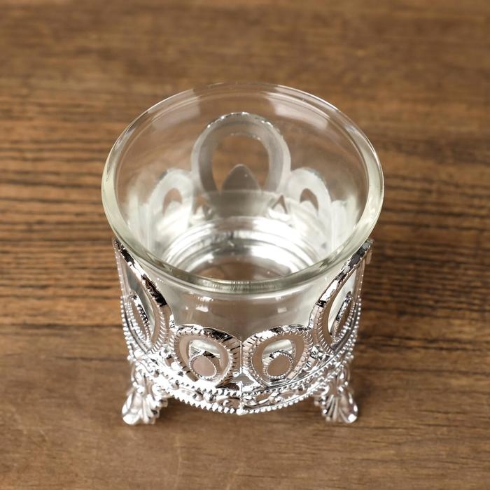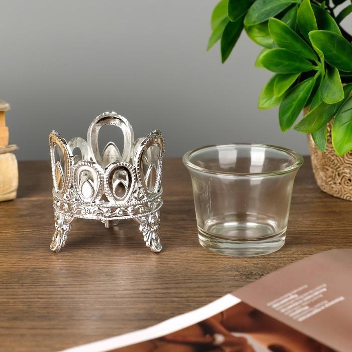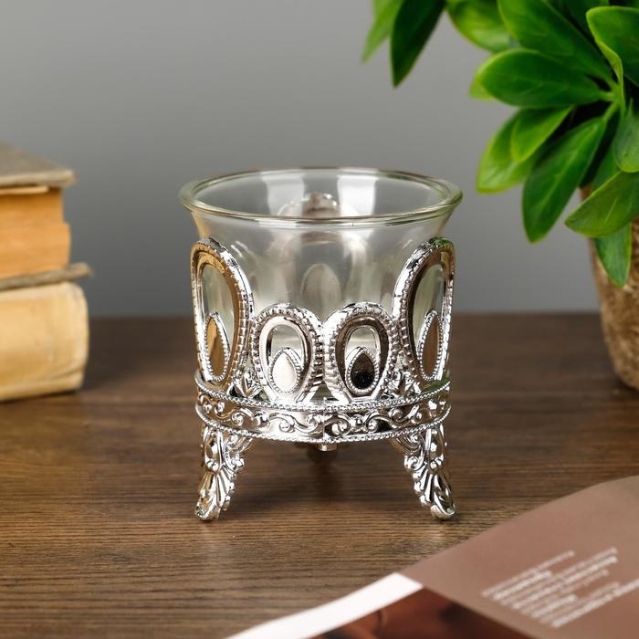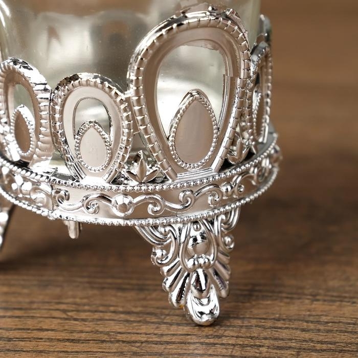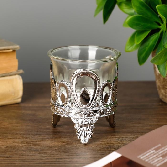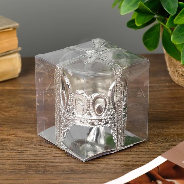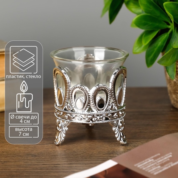 Подсвечник пластик, стекло на 1 свечу "Капельки" серебро 7х6х6 см