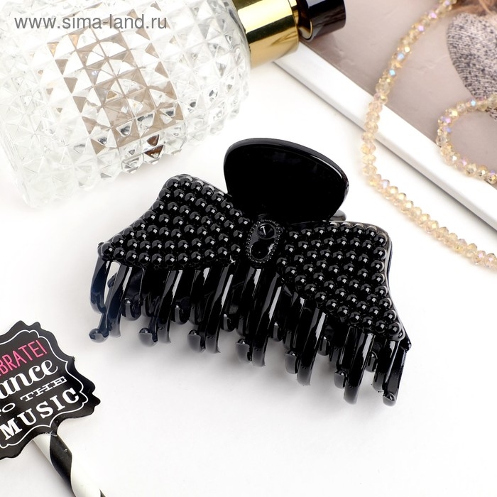 Краб для волос "Глянец" бант из бусинок, 8,5 см, чёрный