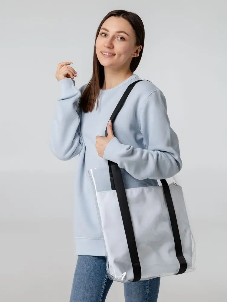 Шопер из ПВХ не промокает, легко чистится и выглядит стильно в любое время года и при любой погоде.