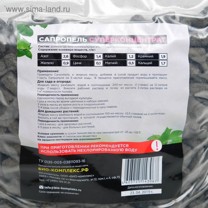 Эффект: улучшает механическую структуру почв, влагопоглотительную и влагоудерживающую способность, аэрацию, что особенно важно для торфяных почв и тепличных смесей. Обеспечивает естественную очистку почвы от тяжелых металлов, остатков разложения минеральных удобрений, нефтепродуктов, пестицидов, болезнетворных растений, грибков и вредных микроорганизмов Это объясняется тем, что Сапропель оттягивает на себя или разлагает вредные вещества, и они переходят в недоступную для растений форму. Выполняет роль естественного биостимулятора, активизируя развитие полезной почвенной микрофлоры. Содержащиеся в нем природные биологически активные вещества добавляют растениям здоровья и иммунитет. Увеличивает содержания гумуса, снабжает растения основными питательными элементами, что приводит к повышению урожайности и качеству садово-огородных культур. Имеет очень длительный период действия (до 2-3 лет).