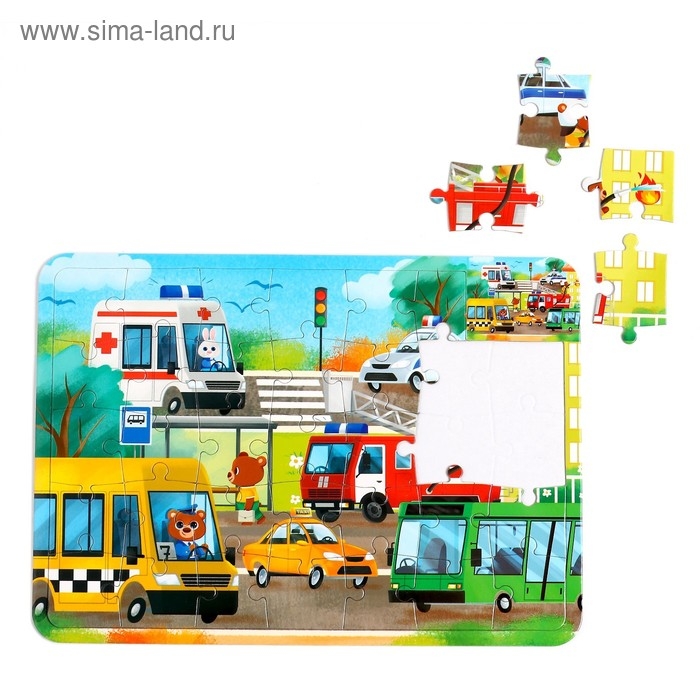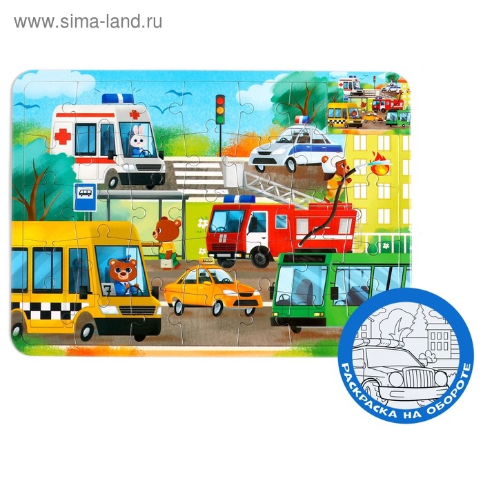 Пазл в рамке «Полезные машины», 34 детали + раскраска