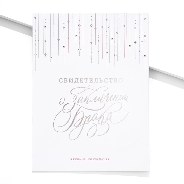 Свидетельство о заключении брака "Белое с кристаллами" тиснение, 23,5 х 31,3 см.
