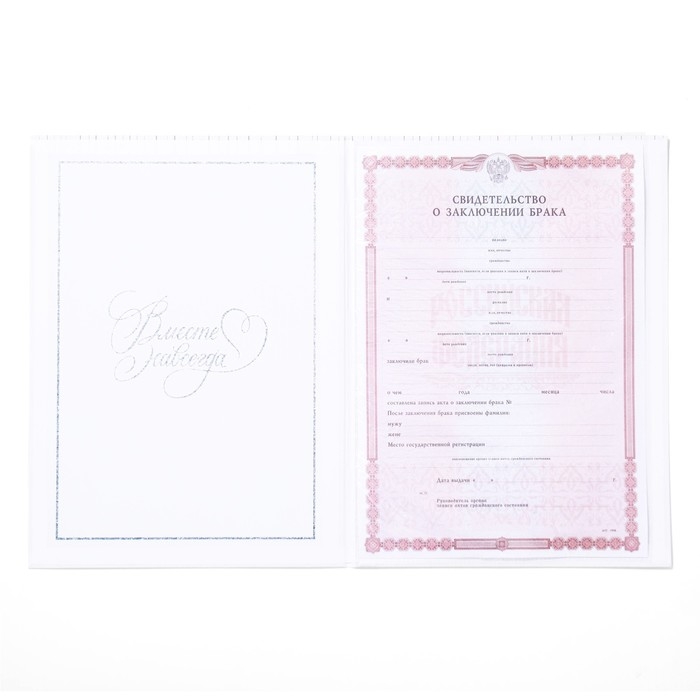 Папка для свидетельства о заключении брака «Вместе навсегда», А4