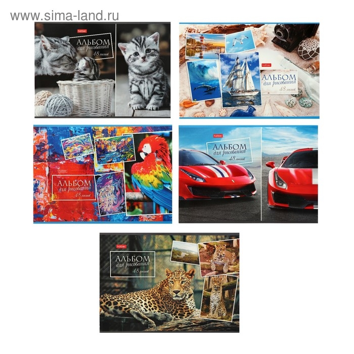 Альбом для рисования А4, 48 листов, на скрепке, "Ассорти", обложка мелованный картон, блок 100 г/м², МИКС