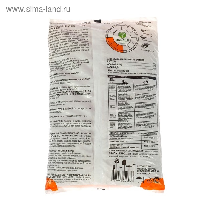 Высокоэффективное «Осеннее» комплексное удобрение с микроэлементами» специально разработано для применения на садовых, огородных и приусадебных участках в летне-осенний период. Используется для основного внесения под осеннюю перекопку и при осенней посадке луковичных культур, земляничной рассады, плодово-ягодных, а также хвойных деревьев и кустарников. Благодаря наличию комплекса микроэлементов и повышенному содержанию калия и фосфора повышает иммунитет и улучшает холодо- и морозостойкость растений.