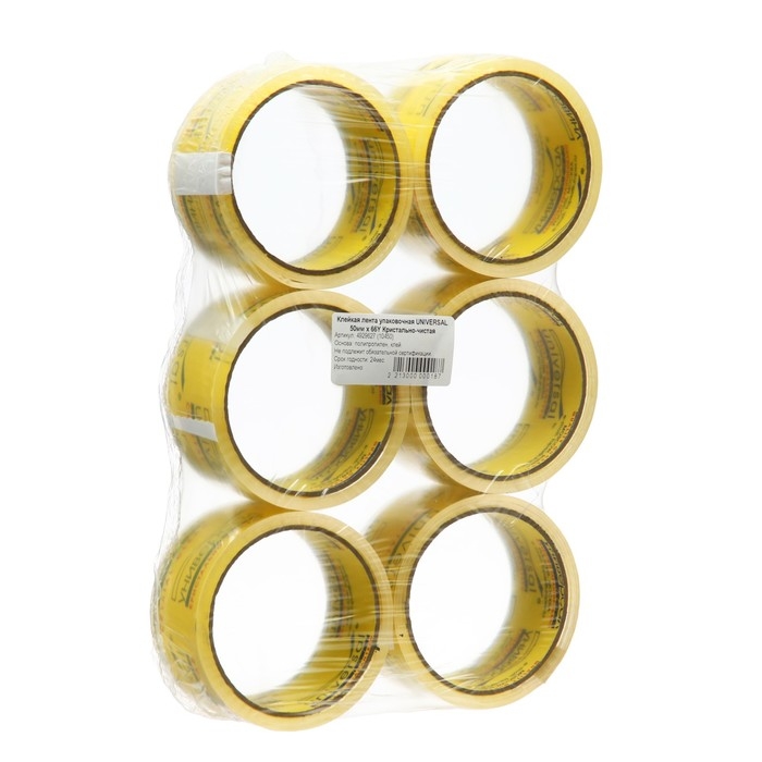 Клейкая лента упаковочная UNIVERSAL 50мм х 66Y кристально - чистая