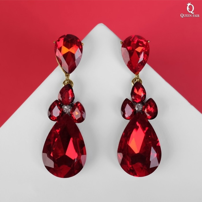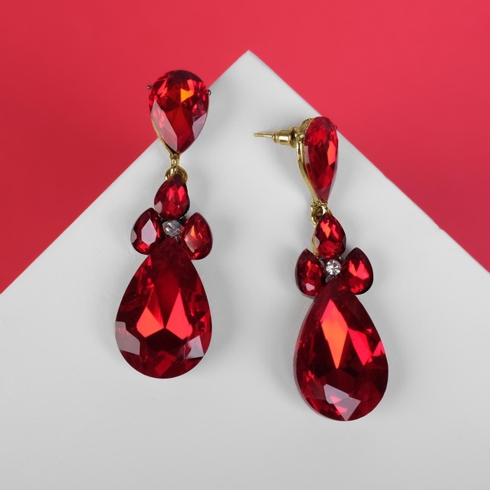 Серьги висячие со стразами «Вечерние» мадам, цвет бело-красный в золоте, 7 см