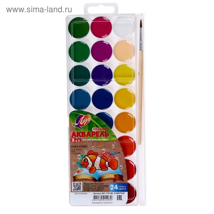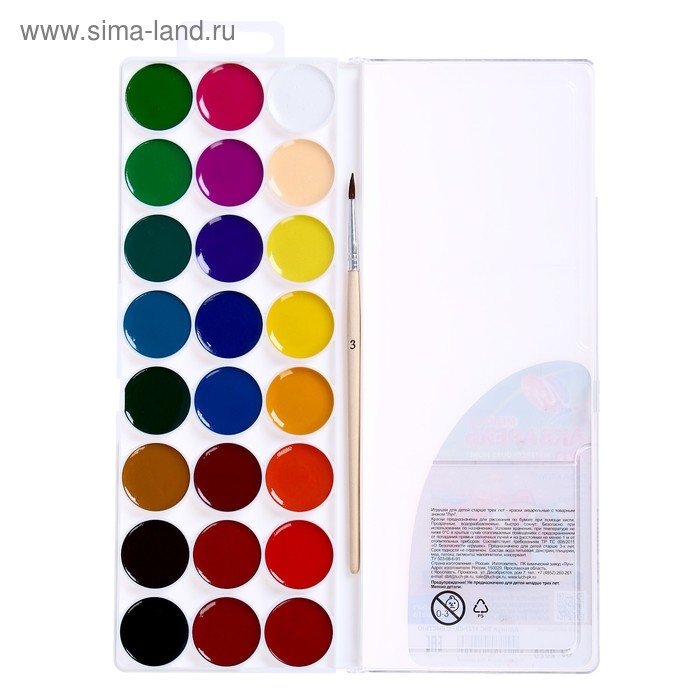Акварель "Луч" ZOO, 24 цвета, с кистью