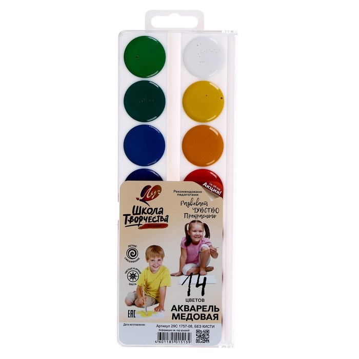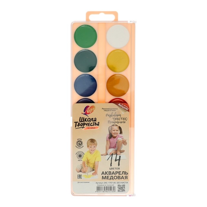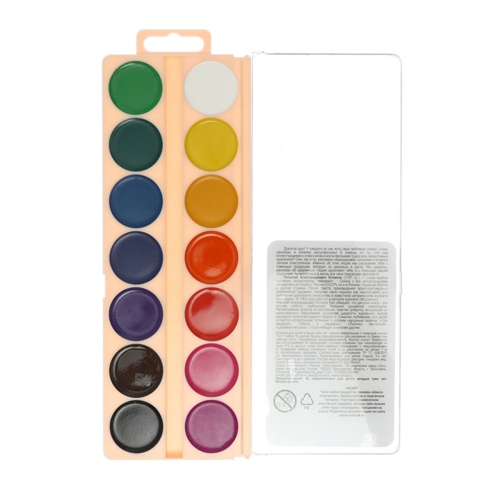 Акварель "Луч" Школа творчества, 14 цветов, без кисти