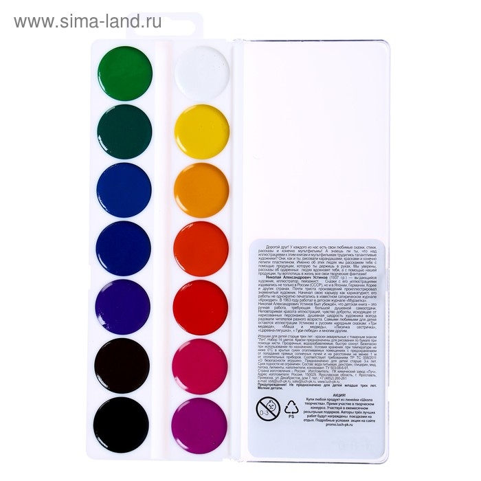 Акварель "Луч" ZOO, 16 цветов, без кисти