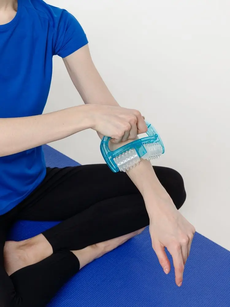 Эргономичная ручка выполнена из прочного пластика. Массажер комфортно лежит в ладони, для пальцев на ручке предусмотрены специальные углубления для удобного хвата.