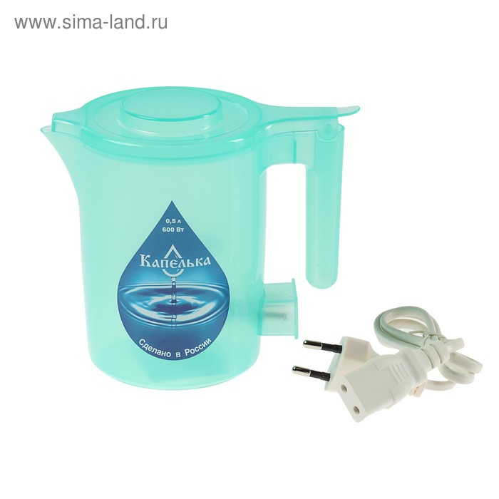 Чайник электрический "Капелька", пластик, 0.5 л, 600 Вт, бирюзовый