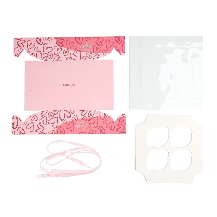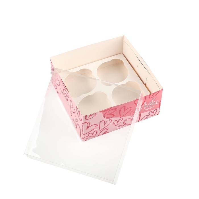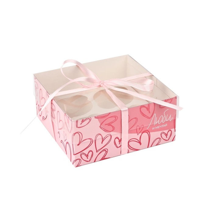 Коробка для капкейков, кондитерская упаковка, 4 ячейки «Люби и мечтай», 16 х 16 х 7.5 см