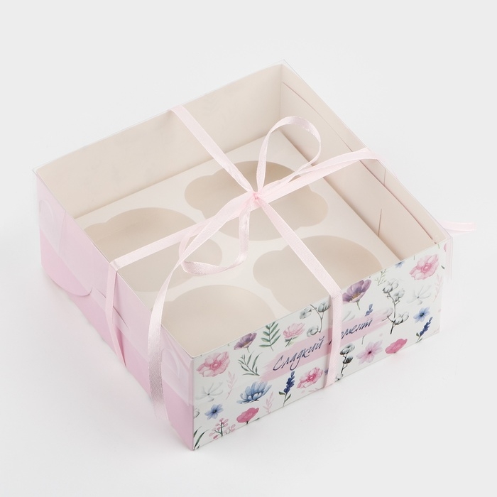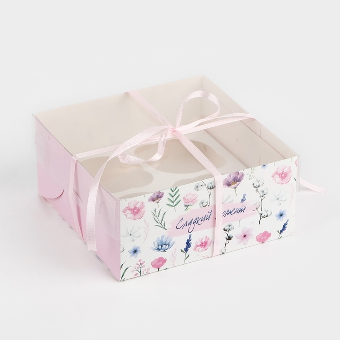 Коробка для капкейков, кондитерская упаковка, 4 ячейки «Сладкий момент», 16 х 16 х 7.5 см