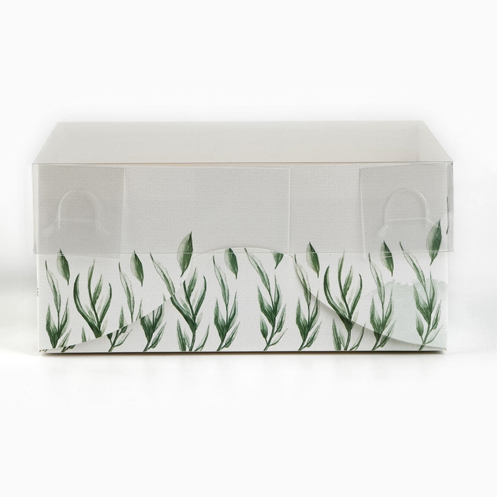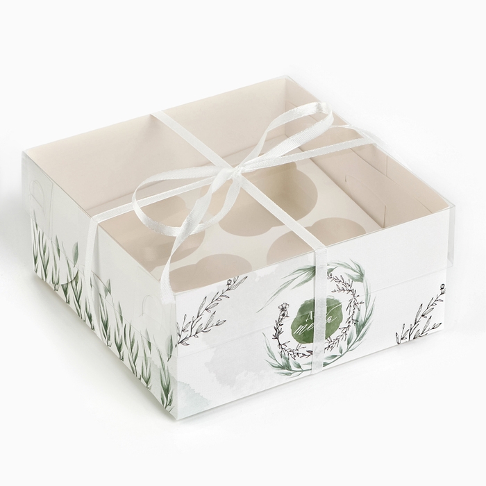 Коробка для 4 капкейка с прозрачной крышкой, "Тюльпаны", 16 × 16 × 10 см, кондитерская упаковка