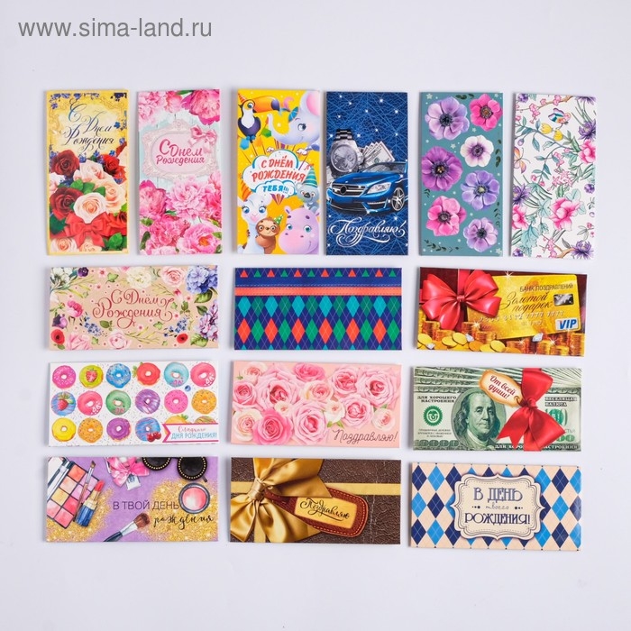 Набор конвертов для денег "С Днем Рождения", 15 шт.