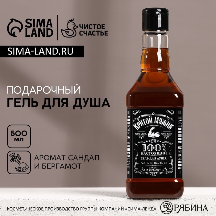 Гель для душа во флаконе виски «Крутой мужик», 500 мл, аромат сандала и бергамота, Новый Год