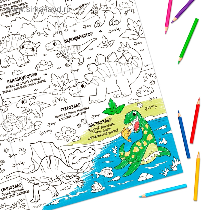 Раскраска гигант «Мир динозавров» — это отличная возможность для детей весело провести время, развивая моторику и фантазию.