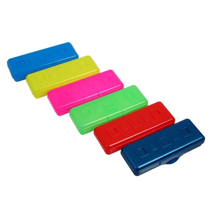 Пенал-футляр Calligrata "Школьный", 80 х 205 х 38 мм, полупрозрачный. пластиковый, микс