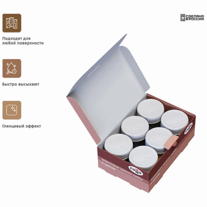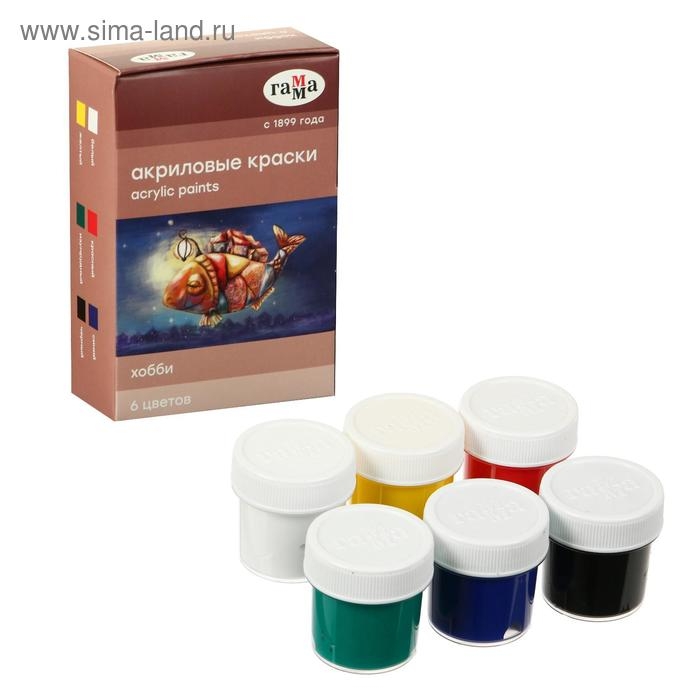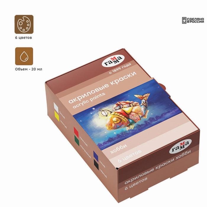 Краска акриловая, набор 6 цветов х 20 мл, Гамма "Хобби", морозостойкая, глянцевая, 3012196