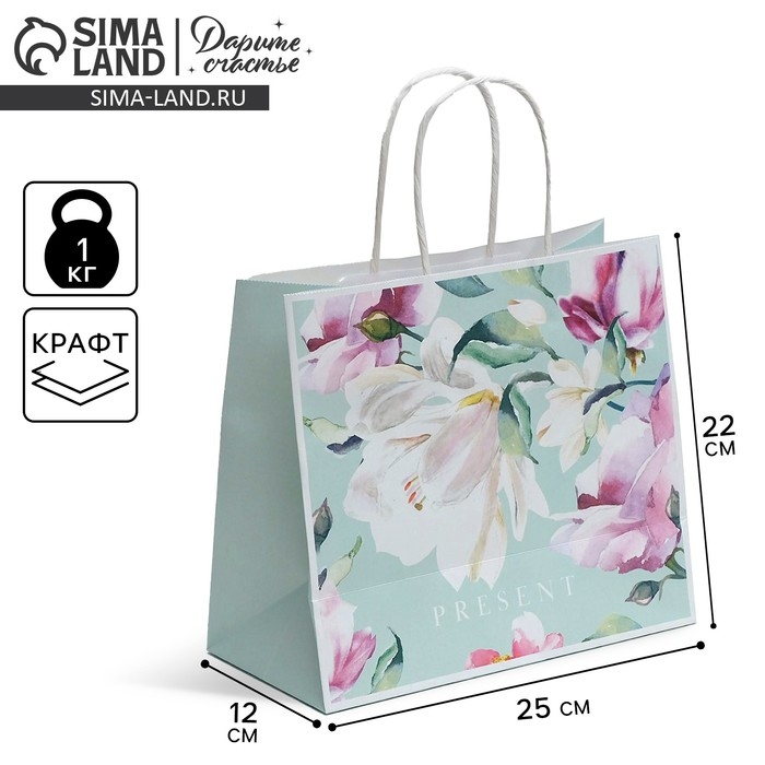 Пакет подарочный крафтовый, упаковка, «Present», 25 х 22 х 12 см