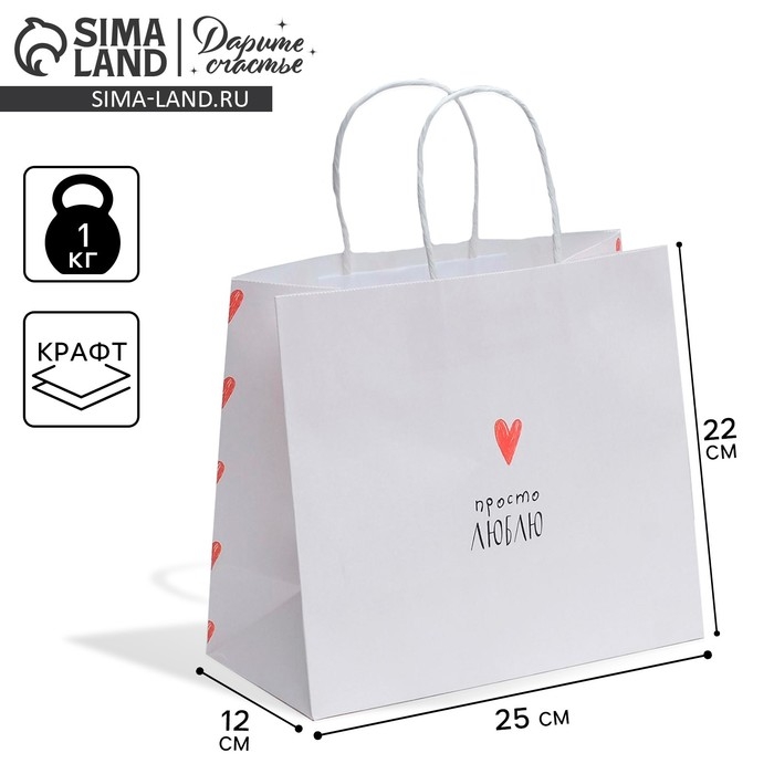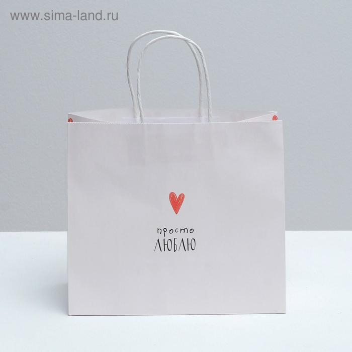 Пакет подарочный крафтовый, упаковка, «Просто люблю», 25 х 22 х 12 см