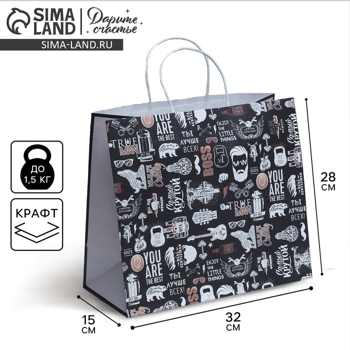 Пакет подарочный крафтовый, упаковка, «Крутой», 32 х 28 х 15 см