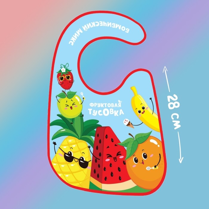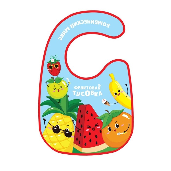 Нагрудник для кормления «Фруктовая тусовка» непромокаемый на липучке, с карманом
