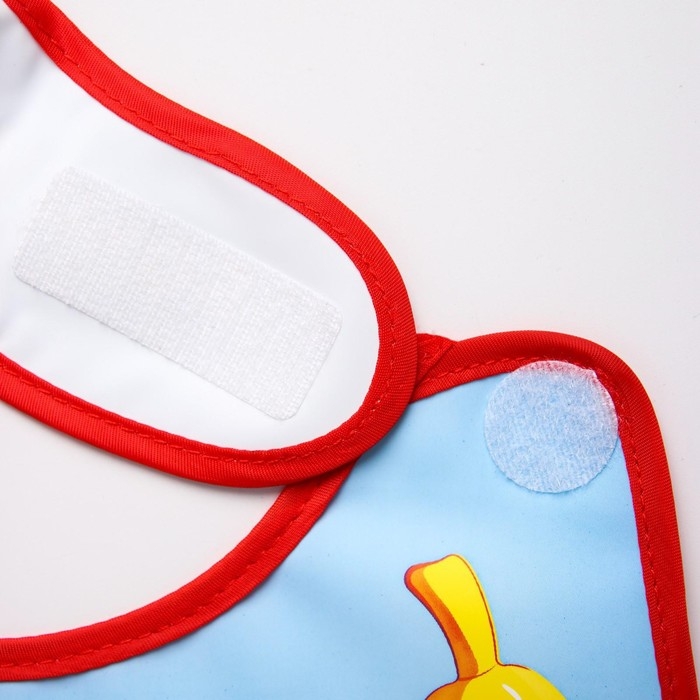 Нагрудник не промокает и качественно защищает, поэтому одежда малыша не испачкается в процессе кормления. У слюнявчика есть специальный кормашек, который выворачивается на лицевую сторону на время приема пищи, в него попадают все крошки: чистым останется не только сам ребёнок, но и место, где он кушает.