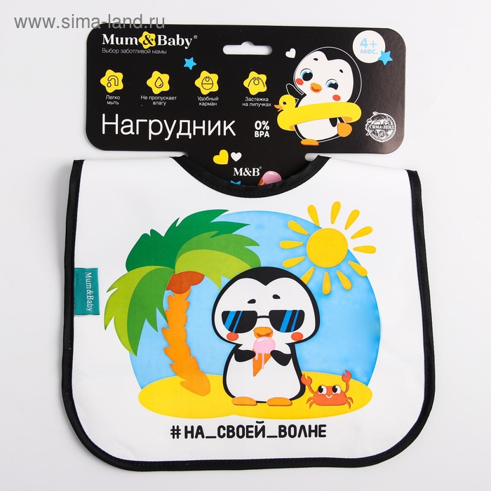 Товар изготовлен из материалов, не содержащего токсичных веществ. После использования мойте тёплой мыльной водой. Нагрудник рекомендован для детей старше 4 месяцев.