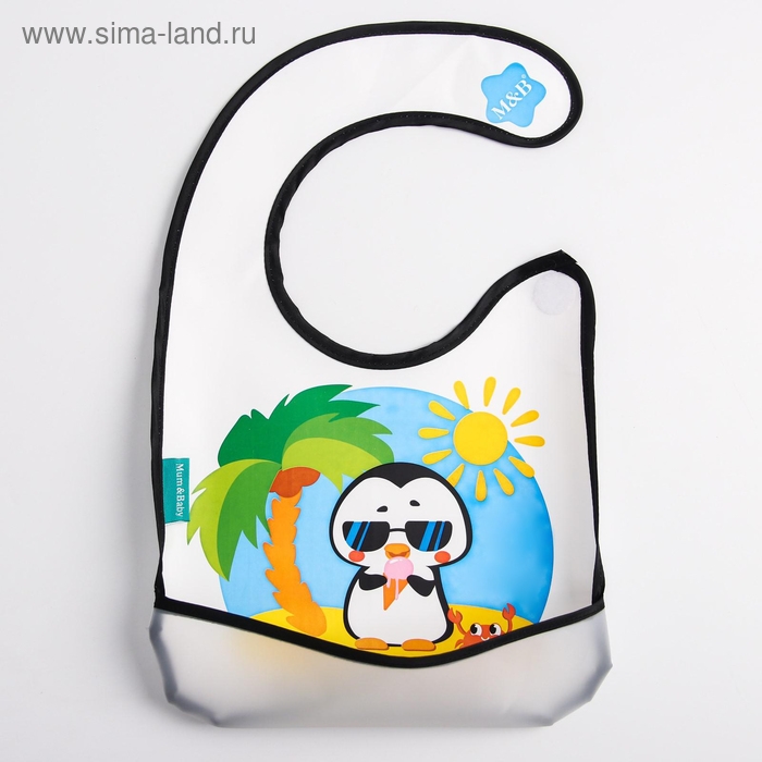 Нагрудник не промокает и качественно защищает, поэтому одежда малыша не испачкается в процессе кормления. У слюнявчика есть специальный кормашек, который выворачивается на лицевую сторону на время приема пищи, в него попадают все крошки: чистым останется не только сам ребёнок, но и место, где он кушает.