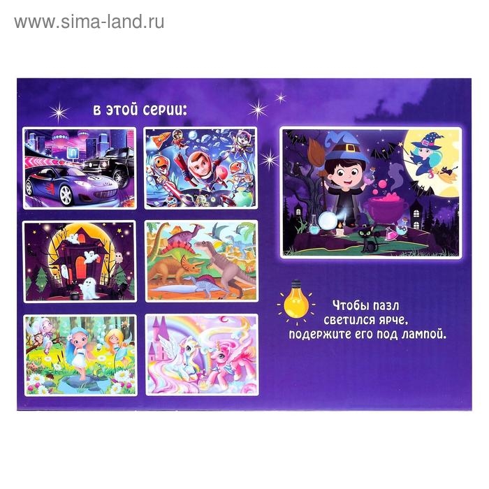 Это не просто пазл, а волшебная игра-головоломка! Достаточно выключить свет в комнате, и вы увидите, как собранная картинка благодаря особой краске начнёт светиться в темноте.