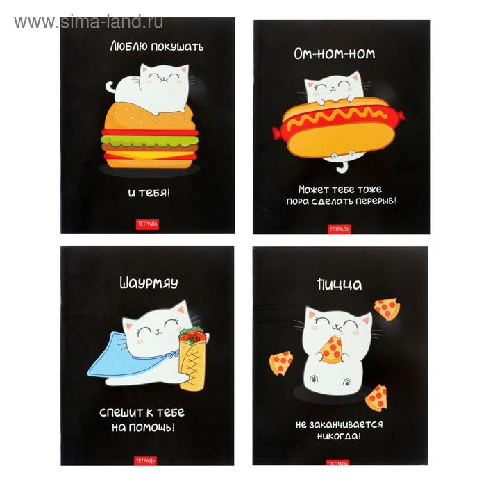 Тетрадь 96 листов в клетку Calligrata "Кошачьи радости", обложка мелованный картон, блок офсет, МИКС