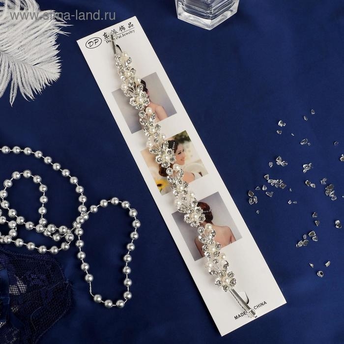 Аксессуар для волос "Никки" цветы с бусинками, 23 см, серебро
