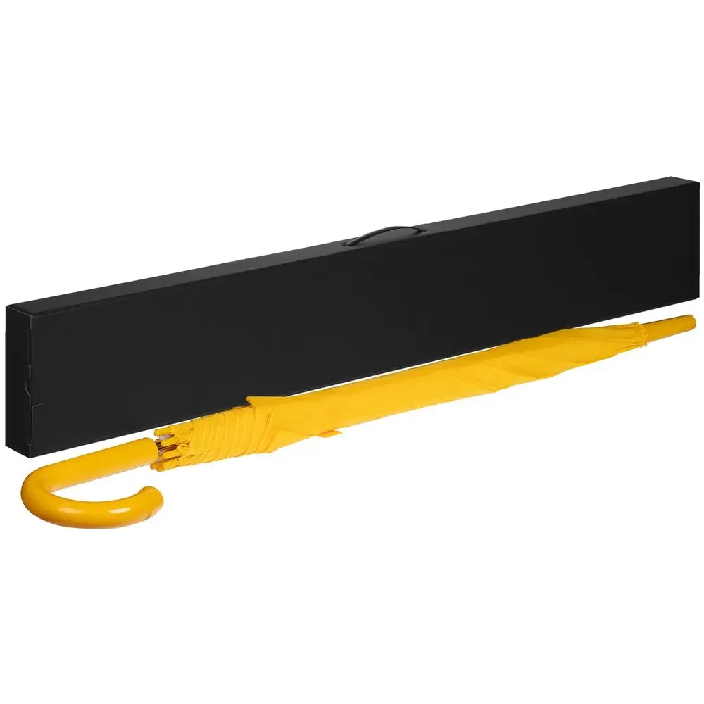 Самосборная коробка для зонта-трости со вставной пластиковой ручкой.