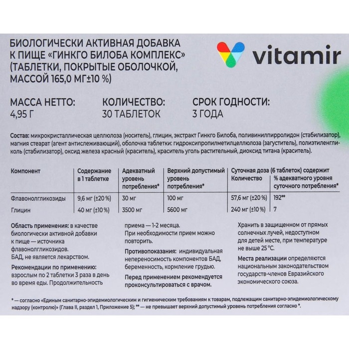 БАД «Гинкго Билоба комплекс», 30 таблеток