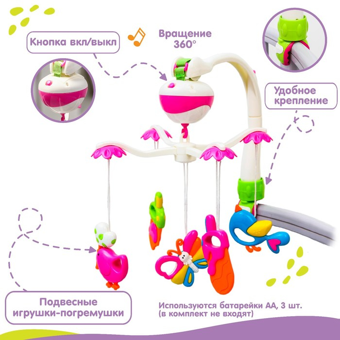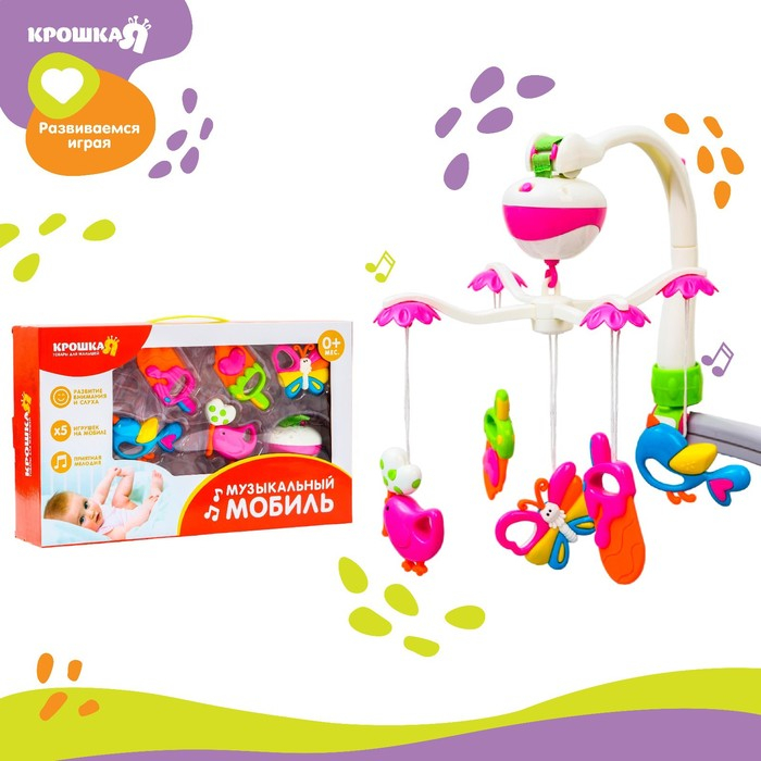 Мобиль музыкальный на кроватку «Полянка», на батарейках, Крошка Я