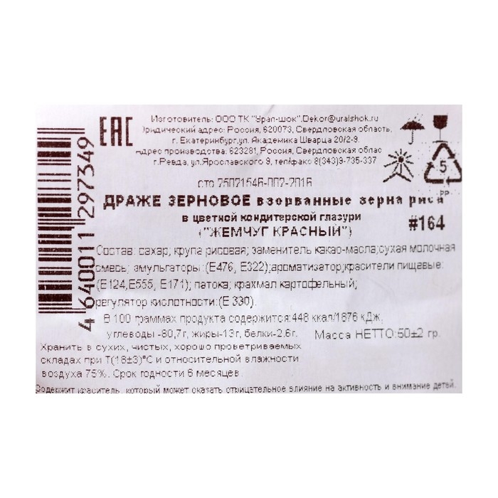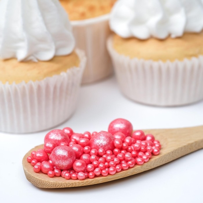 Посыпка кондитерская "Жемчуг" зерна риса в цветной глазури, красный, 50 г