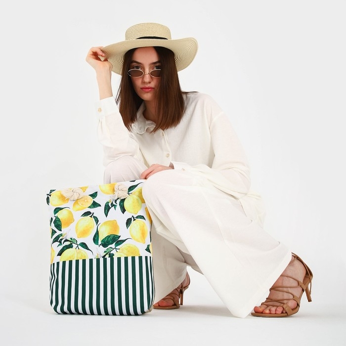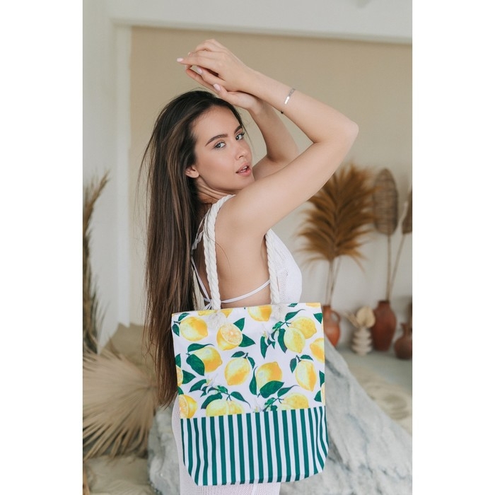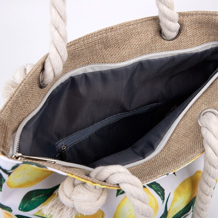 Сумка женская пляжная на молнии, цвет белый/жёлтый